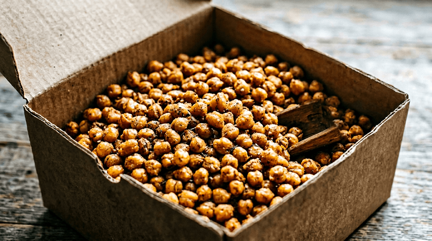 Crunchy oven-roasted chickpeas with an Algerian spice blend: cumin, coriander and mild chili. Protein-rich snack popular across Algeria.